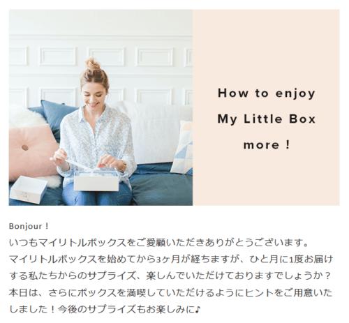そして後日(12月9日)、マイリトルボックスから以下のようなメールが届きました。
