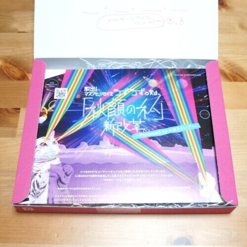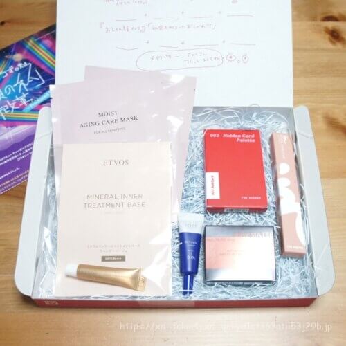 アイムミミのアイシャドウがヒドゥンカードパレットかマルチキューブのどちらかという違いで、どのボックスもほぼ同じ内容となりました。
