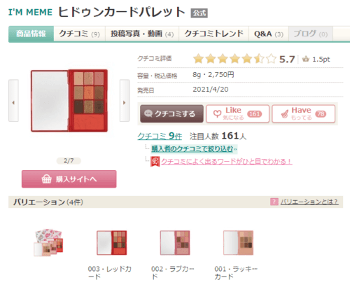 価格は2,750円、アットコスメでの評価も★5.7と高評価なアイテム!